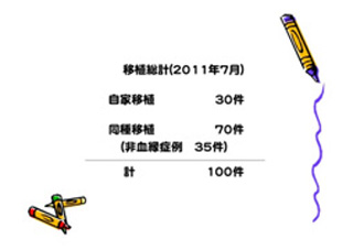 1994年に始まった当科における造血幹細胞移植が、2011年7月現在の累計で100件を超えました。