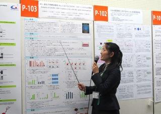 ライフサイエンス特進コースとして小児科で研究をしている医学科4年生の笠井慎君は、「超低分子量ヒアルロン酸によるCD44刺激はMLL遺伝子再構成陽性ALL細胞にカスパーゼ非依存性細胞死を誘導する」と題する口演を行ないました。これは、難治性である乳児白血病において、超低分子量ヒアルロン酸が新たな治療薬となり得る可能性を示したものです。同じく、ライフサイエンス特進コースの医学科3年生の安藤徳恵さんは、「MLL遺伝子再構成陽性ALLにおけるCXCR4/SDF-1システムの解析」と題してポスター発表を行ないました。これは、乳児の白血病細胞が骨随環境中で受ける刺激の、抗がん剤感受性に与える影響について解析したものです。二人とも堂々と発表し、質疑応答でも会場からの質問に的確に答えていました。