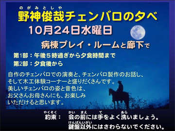 病棟にチェンバロを運んで、チェンバロ作りのお話とチェンバロの音色を披露してくださいました。