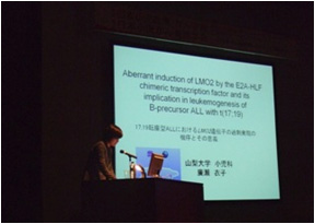 2011年11月25日から27日まで、前橋市で開催された第53回日本小児血液・がん学会学術集会において、当科の廣瀬衣子先生の「Aberrant induction of LMO2 by the E2A-HLF chimeric transcription factor and its implication in leukemogenesis of B-precursor ALL with t(17;19).」が、第1回日本小児・がん学会学術賞の基礎研究部門を受賞しました。この論文は、血液研究の分野で最も権威あるBLOOD誌に掲載されたものです。