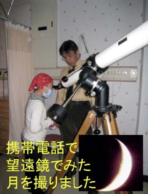 三日月の美しいクレーターを自分の携帯電話でレンズ越しに撮影することに成功した子もいました。