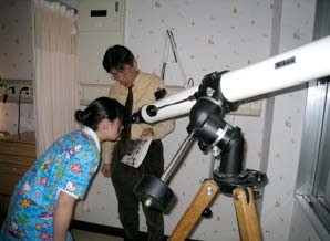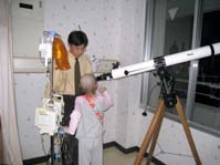 幼児から中学生まで8名の子ども達が順番に観察しましたが、みんな望遠鏡で月や惑星を見たのは初めてで、何度も繰り返して望遠鏡を覗く子もいました。