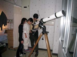 南西向きに窓のある病室の一画に望遠鏡を据えて、金星と木星そして月を窓越しに望遠鏡で見ました。