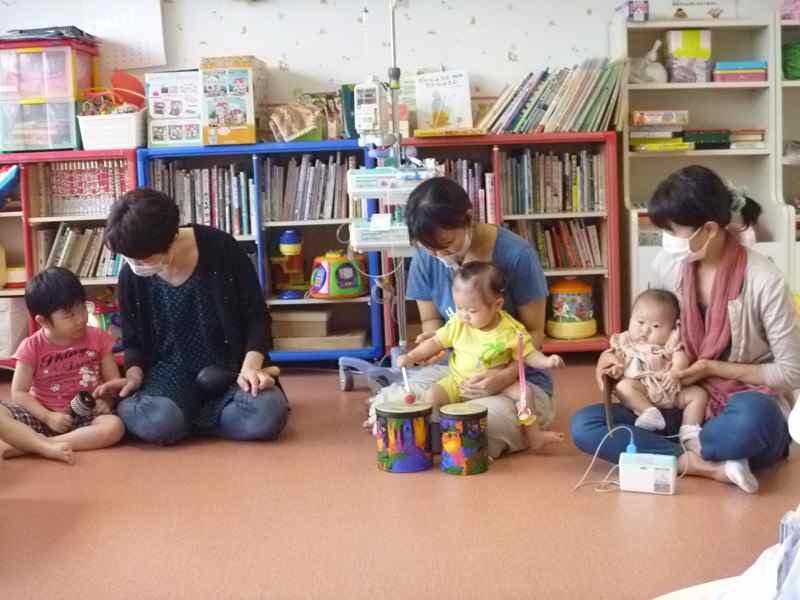 2012年11月に行われた「絵本カーニバル」の際に、病棟に来て下さったノルウエー政府公認音楽療法士である井上勢津さんが、タケダ・ウェルビーイング・プログラムの助成を受けたNPO財団絵本カーニバルのご支援で、2013年3月から毎月病棟に来て下さっています。