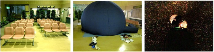 本格的な夜空が映し出されました。直径4mのエア・ドームには車椅子や点滴台も入ることができて、