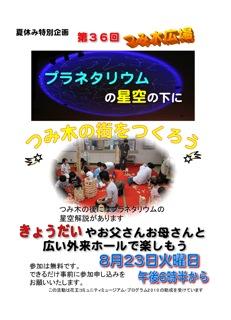 2011年8月23日に、病院1階の外来ホールで小児科病棟「プラネタリウムとつみ木の夕べ2011」を開催しました。今回も、夏休みに入院している子ども達が、ご両親やきょうだいと一緒に楽しめるように、外来業務が終了したホールを使って平日の午後18時半から行ないました。