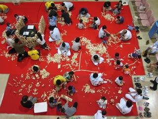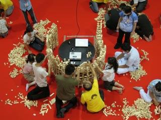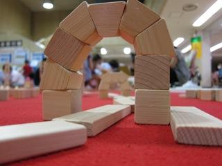 「つみ木広場」が始まると、子ども達が、お父さんお母さんや、きょうだいとも力をあわせて作品を作りはじめました。
