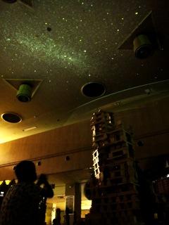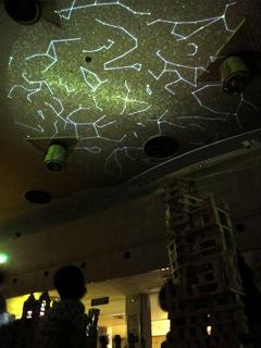会場の天井に、プラネタリウムが投影されると、まるで「つみ木の街」に夜が訪れたかのような幻想的な雰囲気になりました。