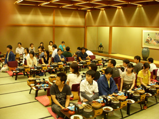 浴衣に着替えてすっかり温泉モードに切り替わった杉田教授のお言葉で、大宴会が開幕しました。