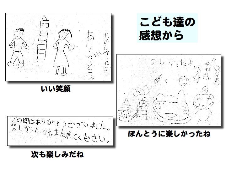 最後には一生懸命に積み上げた作品を、気持ちを込めて「積み木さん、ありがとう」の言葉とともに、みんなで抱きしめるようにして崩し片付けていきます。「また来月に来るからね」という荻野さんの言葉に、次は何を作ろかと、みんな次回を楽しみしています。