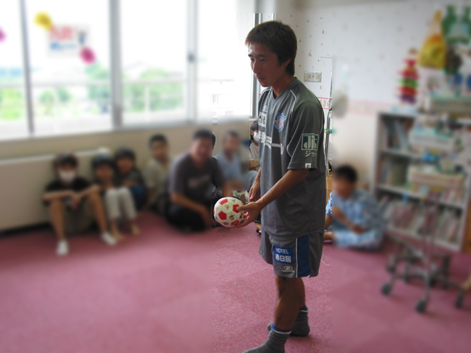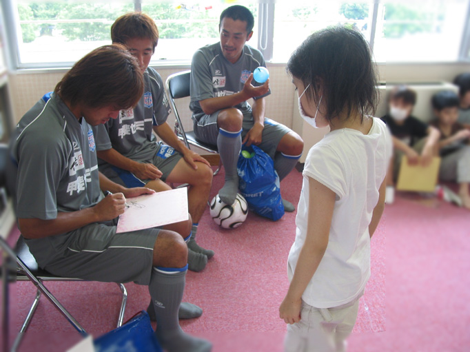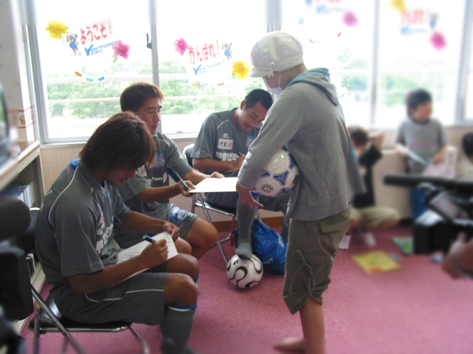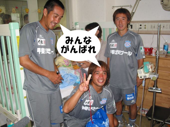 平成18年7月11日、Jリーグで大活躍しているヴァンフォーレ甲府の選手が病棟のみんなを励ましに来てくれました。