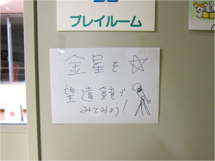 そして、実際に望遠鏡を覗いてもらうと・・・「エエッ・・・!!」「なんで〜〜?」「これ星なの?」「ワア〜ッ!!!」と驚きの声が上がります。そう、金星は太陽に近い惑星なので、月のように満ち欠けするのです。