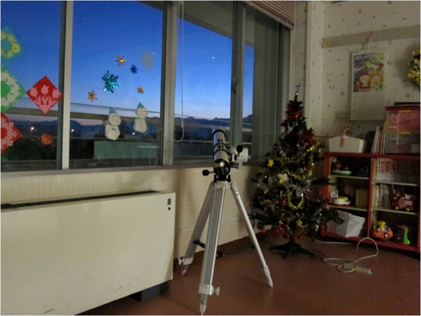 2013年12月25日、夕方の西の空に明るく輝くのは「宵の明星」と呼ばれる金星です。病棟の窓からも奇麗に見えています。この金星を望遠鏡で見ると、どんな風に見えるのでしょうか?