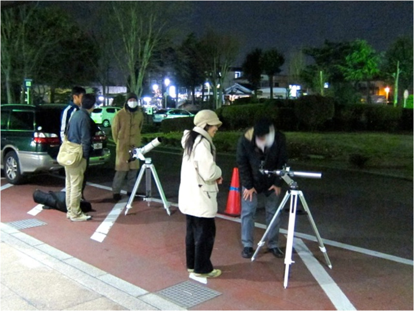 みんなが代わる代わる望遠鏡をのぞくと、「オオッ!」とか「エーッ?」とか歓声があがります。望遠鏡の視野のなかには、意外なものの姿があったのでした。